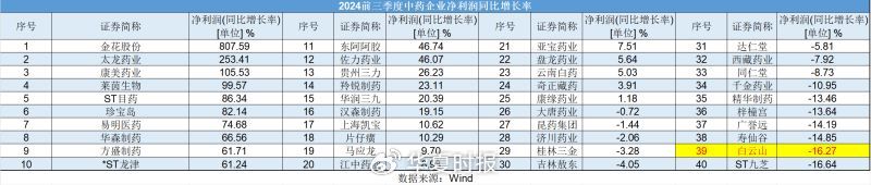 Wind数据显露,白云山本年前三季度的净利润增速在中药(长江)因素中名按次39位。处于中下贱位置。